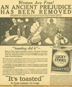 Of course, the idea originated from Bernays’ partners in the Tobacco Industry, highlighting an indirect agreement between women’s rights and cigarette promotion. Unfortunately this newfound partnership came with a side of cancer-risk and a hefty dose of irony.